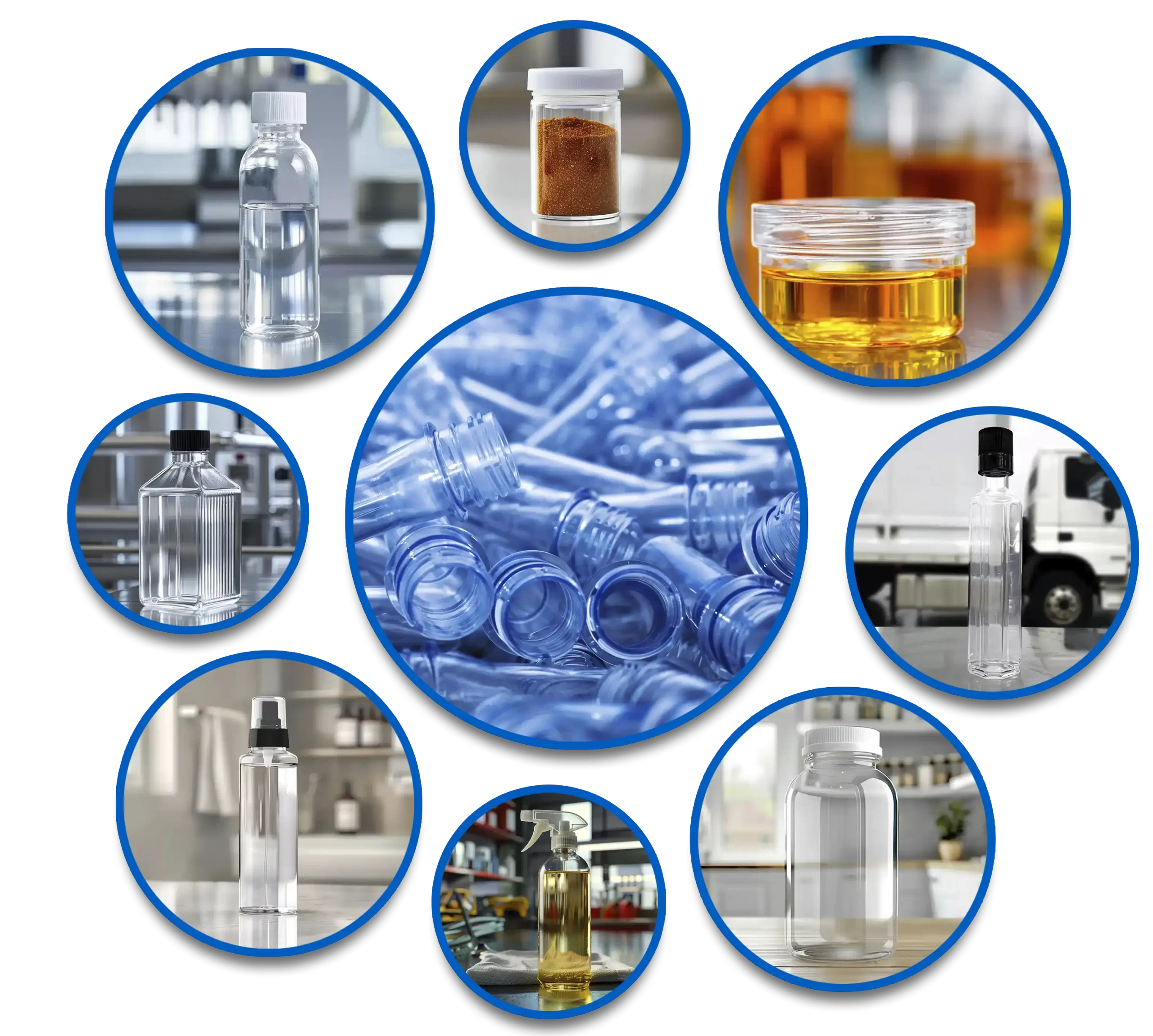 - Custom ISBM bottles for lab, automotive, industrial, and consumer applications